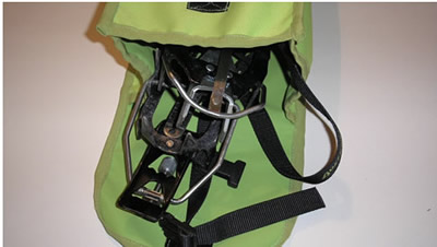 Se diseñó este estuche cubre crampones, porque no es recomendable cargarlos en el exterior de la mochila, porque se pueden hacer daño, o a la cordada.